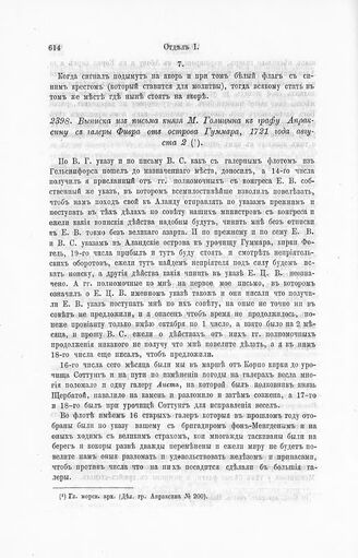 Выписка из письма князя М. Голицына к графу Апраксину с галеры Фивра от острова Гуммара, 1721 года августа 2 // Гл. морск. арх. (Дел. гр. Апраксина № 200).