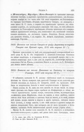 Выписка из письма Сиверса к графу Апраксину с корабля Гангут от Красной горки, 1721 года августа 21 // Гл. морск. арх. (Дел. гр. Апраксина № 203).
