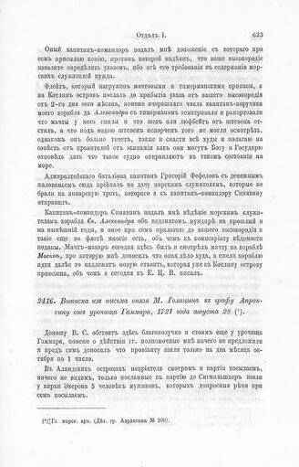 Главная Материалы для истории флота Материалы для истории русского флота. Ч. 2 Документы Выписка из письма князя М. Голицына к графу Апраксину от урочища Га...