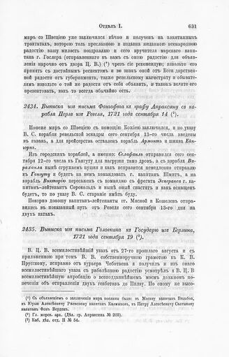 Выписка из письма Головкина к Государю из Берлина, 1721 года сентября 19 // Каб. дел. отд. II № 54.