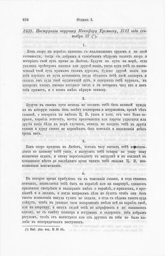 Инструкция поручику Никифору Еремееву, 1721 года сентября 27 // Каб. дел. отд. II № 55.
