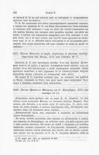 Письмо Крюйса к Макарову из С. Петербурга, 1721 года октября 12 // Каб. дел. отд. II № 55.