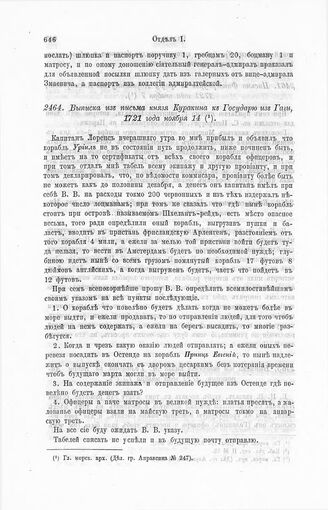 Выписка из письма князя Куракина к Государю из Гаги, 1721 года ноября 14 // Гл. морск. арх. (Дел. гр. Апраксина № 247).
