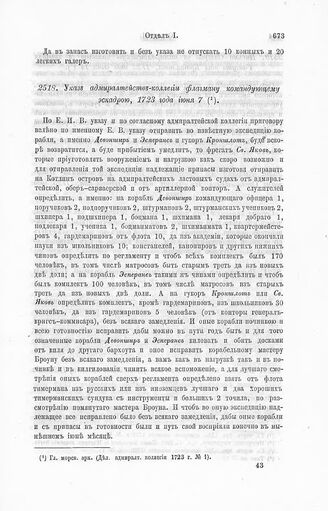 Гл. морск. арх. (Дел. адмиралт. коллегии 1723 г. № 1).