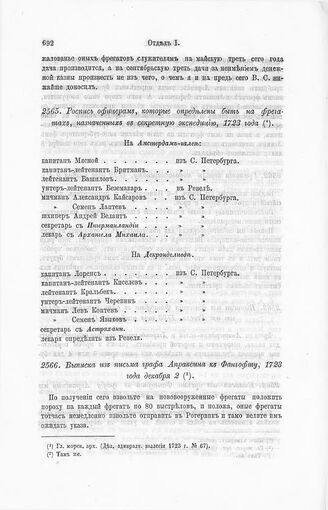 Выписка из письма графа Апраксина к Фангофту, 1723 года, декабря 2 // Гл. морск. арх. (Дел. адмиралт. коллегии 1723 г. № 67).