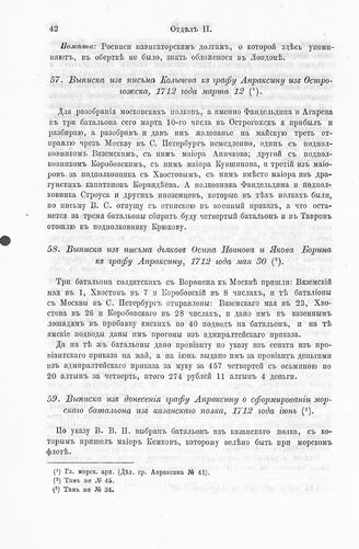 Выписка из донесения графу Апраксину о сформировании морского батальона из казанского полка, 1712 года июнь // Гл. морск. арх. (Дел. гр. Апраксина № 34).