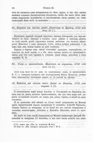 Выписка из письма графа Апраксина к Крюйсу, 1713 года июня 12 // Гл. морск. арх. (Дел. гр. Апраксина № 251).