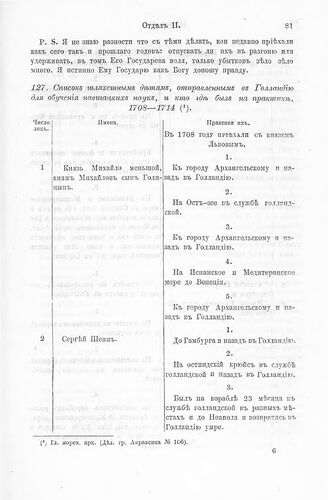 Список шляхетным детям, отправленным в Голландию для обучения навиг...