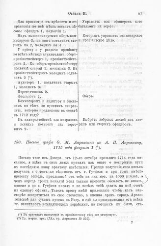 Письмо графа Ф. М. Апраксина к А. П. Апраксину, 1715 года февраля 1 // Гл. морск. арх. (Дел. гр. Апраксина № 253).