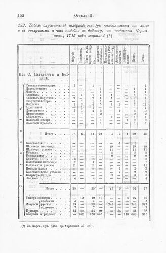 Табель служителей галерной, эскадры находящихся на лицо и с отлучны...