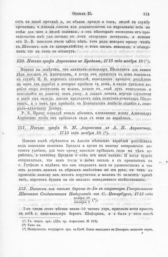 Письмо графа Апраксина к Бредалю, 1715 года ноября 18 // Гл. морск. арх. (Дел. гр. Апраксина № 253).