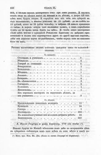 Сведения о мастерах, мастеровых и рабочих людях, 1703-1724. Письмо Государя к графу Апраксину, 1710 года декабрь // Моск. арх. Мин. Ин. Дел. (Копии с писем Государя к Апраксину).