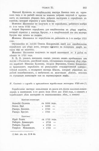 Сведения о мастерах, мастеровых и рабочих людях, 1703-1724. Сведение о службе и производстве корабельных мастеров 1723 года // Каб. дел. отд. II № 66.