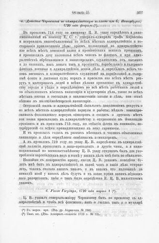 Сведения о морских административных учреждениях. Донесение Чернышева в адмиралтейскую коллегию из С. Петербурга, 1720 года февраль