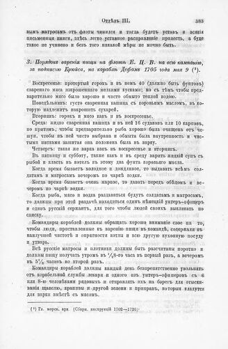 Порядок варения пищи на флоте Е. Ц. В. на всю кампанию, за подписью Крюйса, на корабль Дефам, 1705 года мая 9 // Гл. морск. арх. (Сборн. инструкций 1702-1726).