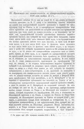 Промемория из камер-коллегии в адмиралтейств-коллегию, 1719 года ноября 18 // Гл. морск. арх. (Дел. адмиралт. коллегии 1719 г. № 6).