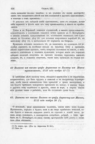 Выписка из письма Беляева к графу Апраксину из Москвы, 1713 года ноября 20 // Гл. морск. арх. (Дел. гр. Апраксина № 251).