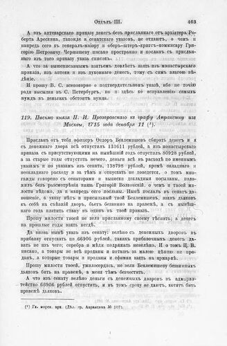 Письмо князя П. И. Прозоровского к графу Апраксину из Москвы, 1715 года декабря 11 // Гл. морск. арх. (Дел. гр. Апраксина № 107).