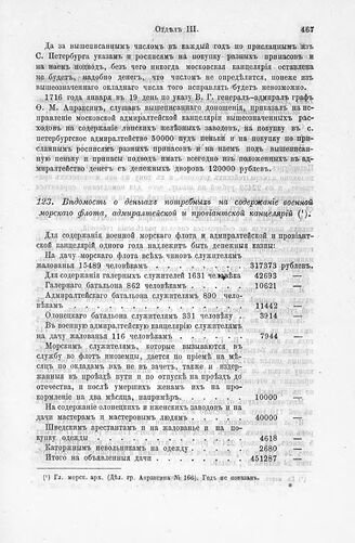 Ведомость о деньгах потребных на содержание военной, морского флота...