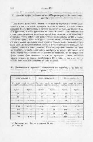 Ведомость о пушках, потребных на корабли, 1715 года апреля 7 // Гл. морск. арх. (Дел. гр. Апраксина № 252).