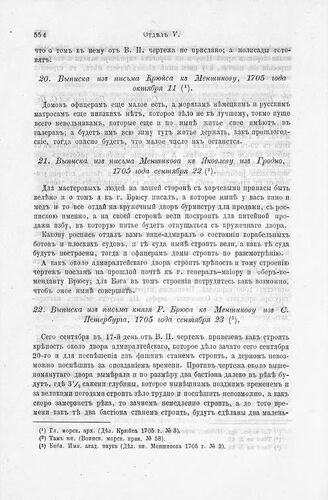 Выписка из письма Крюйса к Меншикову, 1705 года октября 11 // Гл. морск. арх. (Дел. Крюйса 1705 г. № 3).