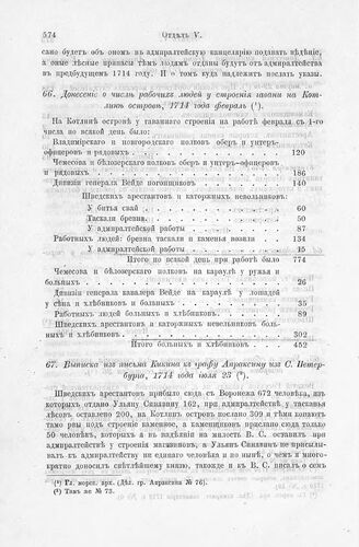 Выписка из письма Кикина к графу Апраксину из С. Петербурга, 1714 года июля 23 // Гл. морск. арх. (Дел. гр. Апраксина № 73).