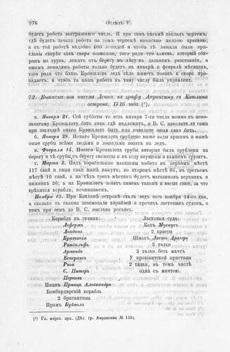 Выписки из писем Леина к графу Апраксину с Котлина острова, 1716 года // Гл. морск. арх. (Дел. гр. Апраксина № 118).