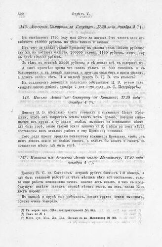 Выписка из донесения Леина князю Меншикову, 1720 года декабря 4 // Моск. арх. Мин. Ин. Дел. (Письма к кн. Меншикову № 18).