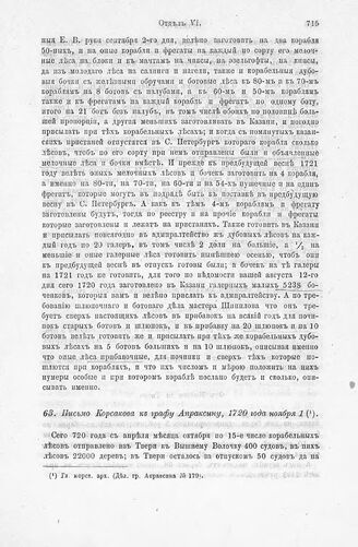 Письмо Корсакова к графу Апраксину, 1720 года ноября 1