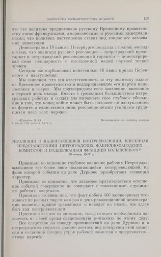Проекты резолюций и заявления, внесенные на I Всероссийском съезде Советов рабочих и солдатских депутатов. 3-24 июня. Резолюция о надвигающейся контрреволюции, внесенная представителями петроградских фабрично-заводских комитетов и поддержанная фра...
