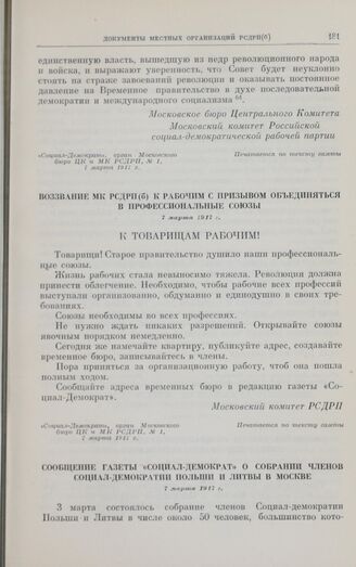 Главная Октябрьская революция и установление советской власти в республиках... Коммунистическая партия Советского Союза в борьбе за победу социали... КПСС в борьбе за победу социалистической революции в период двоевла... Документы Воззвание МК РСДРП(б) к рабочим с призывом объединяться в профессио...