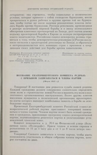 Воззвание Екатеринбургского комитета РСДРП(б) с призывом записываться в члены партии. [Март] 1917 г. // «Уральская Жизнь» № 53, 8 марта 1917 г.