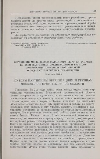 Главная Октябрьская революция и установление советской власти в республиках... Коммунистическая партия Советского Союза в борьбе за победу социали... КПСС в борьбе за победу социалистической революции в период двоевла... Документы Обращение Московского областного бюро ЦК РСДРП(б) ко всем партийным...