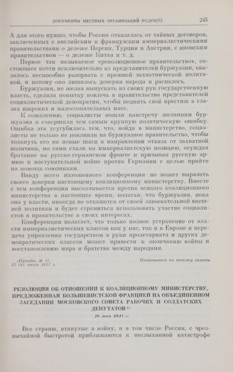 Главная Октябрьская революция и установление советской власти в республиках... Коммунистическая партия Советского Союза в борьбе за победу социали... КПСС в борьбе за победу социалистической революции в период двоевла... Документы Резолюция об отношении к коалиционному министерству, предложенная б...