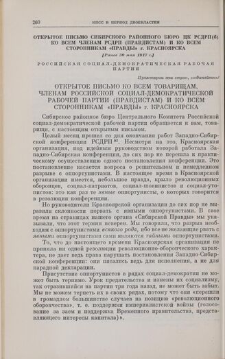 Открытое письмо Сибирского районного бюро ЦК РСДРП(б) ко всем членам РСДРП (правдистам) и ко всем сторонникам «Правды» г. Красноярска. [Ранее 30 мая] 1917 г.