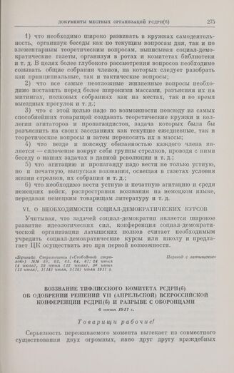 Воззвание Тифлисского комитета РСДРП(б) об одобрении решений VII (апрельской) Всероссийской конференции РСДРП(б) и разрыве с оборонцами. 6 июня 1917 г.