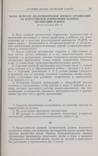Главная Октябрьская революция и установление советской власти в республиках... Коммунистическая партия Советского Союза в борьбе за победу социали... КПСС в борьбе за победу социалистической революции в период двоевла... Документы Наказ делегату Екатеринбургской военной организации на Всероссийску...