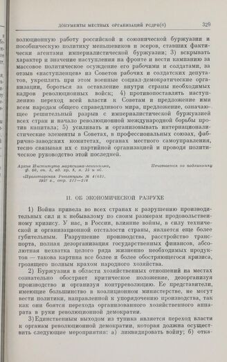 Резолюции, принятые пленумом Московского областного бюро РСДРП(б). 28-29 июня 1917 г. Об экономической разрухе