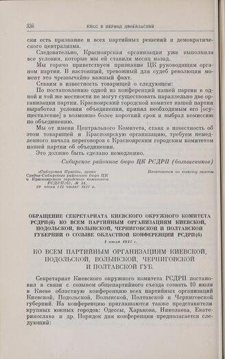 Главная Октябрьская революция и установление советской власти в республиках... Коммунистическая партия Советского Союза в борьбе за победу социали... КПСС в борьбе за победу социалистической революции в период двоевла... Документы Обращение секретариата Киевского окружного комитета РСДРП(б) ко все...