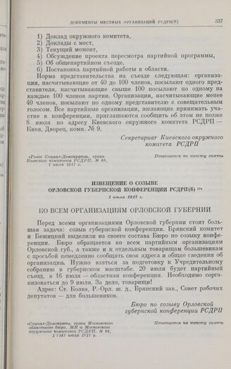 Главная Октябрьская революция и установление советской власти в республиках... Коммунистическая партия Советского Союза в борьбе за победу социали... КПСС в борьбе за победу социалистической революции в период двоевла... Документы Извещение о созыве Орловской губернской конференции РСДРП(б). 1 июл...
