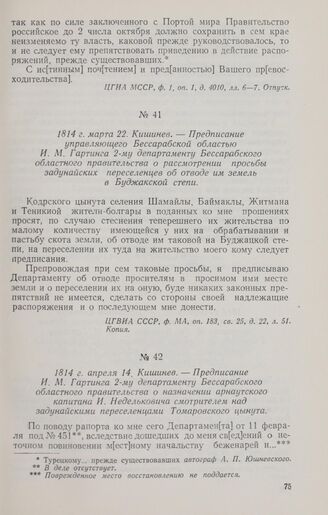 Главная История Молдавии: Док. и материалы. Т. II. Устройство задунайских п... Документы 1814 г. марта 22. Кишинев. — Предписание управляющего Бессарабской ...