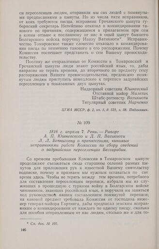 1816 г. апреля 7. Рени. — Рапорт А. П. Юшневского и Д. П. Ватикиоти Л. Л. Беннигсену о препятствиях, чинимых исправниками работе Комиссии по сбору сведений о задунайских переселенцах Бессарабии