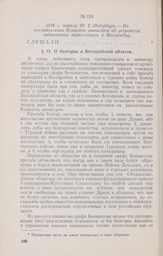 1816 г. апреля 29. С.-Петербург. — Из постановления Комитета министров об устройстве задунайских переселенцев в Бессарабии // ЦГИАЛ, ф. 1263, оп. 7, д. 94, лл. 469 об. — 479. Подлинник.