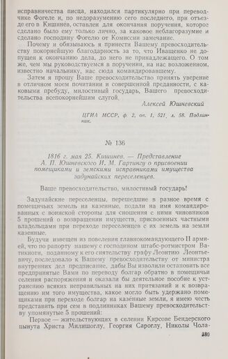 Главная История Молдавии: Док. и материалы. Т. II. Устройство задунайских п... Документы 1816 г. мая 25. Кишинев. — Представление А. П. Юшневского И. М. Гар...