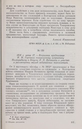 Главная История Молдавии: Док. и материалы. Т. II. Устройство задунайских п... Документы 1816 г. июня 17. — Вторичное предписание И. М. Гартинга томаровском...