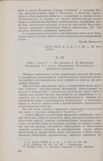 1816 г. июля 7. — Ив рапорта А. Н. Бахметева Александру I о целях образования Бессарабского временного комитета