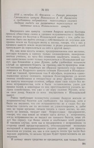 Главная История Молдавии: Док. и материалы. Т. II. Устройство задунайских п... Документы 1816 г, октября 15. Фромоса. — Рапорт ревизора Гречанского цынута М...