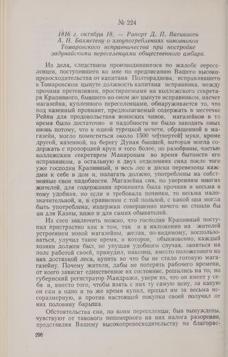1816 г. октября 18. — Рапорт Д. П. Ватикиоти А. Н. Бахметеву о злоупотреблениях чиновников Томаровского исправничества при постройке задунайскими переселенцами общественного амбара // ЦГИА МССР, ф. 17, оп. 1, д. 17, лл. 139—140. Подлинник.