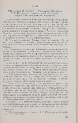 1816 г. ранее 16 ноября. — Письменное объявление С. Г. Навроцкого о льготах, предоставляемых задунайским переселенцам Бессарабии