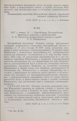 1817 г. января 18. — Определение Бессарабского временного комитета о представлении А. Н. Бахметеву формулярного списка о службе А. П. Юшневского